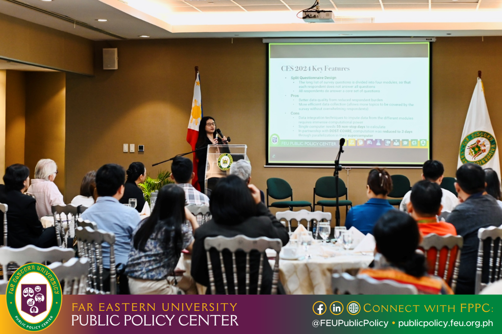 Dr. Michael Alba — FPPC President and former FEU President — led the presentation of key insights from the CES. He was joined by data analyst Isabella Choa and research coordinator Kier Ballar of the FPPC. The findings they discussed focused on the civic engagement of college students, particularly on their perspectives on active citizenship and various social issues.
