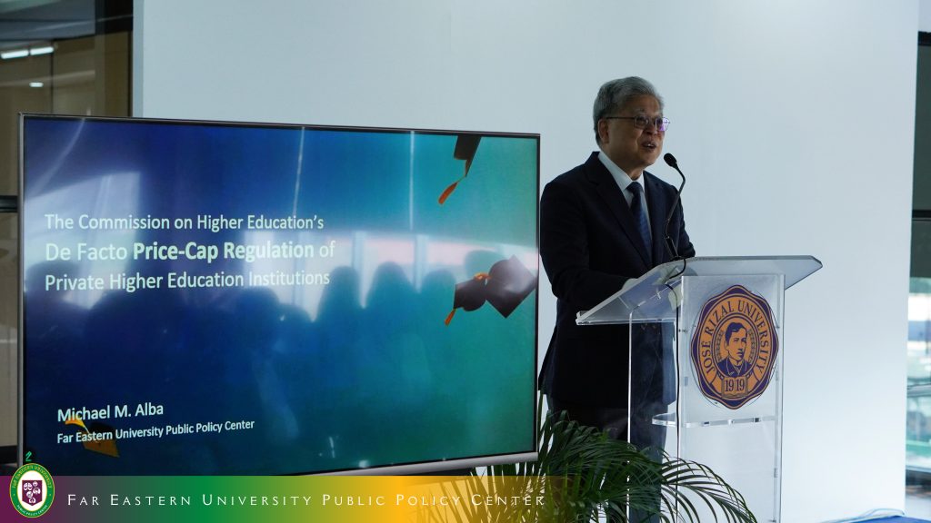Main Presentation was delivered by Dr. Michael M. Alba, FEU PPC President and UPPEJA Fellowship Awardee, who discussed CHED’s price-cap regulation model—its legal basis (CMO 03, s.2012), framework for regulating higher education costs, and issues in regulation design. Dr. Alba also analyzed values applied in policy, governance gaps between private HEIs and SUCs, and proposed principles for improving tuition and school fee regulation.