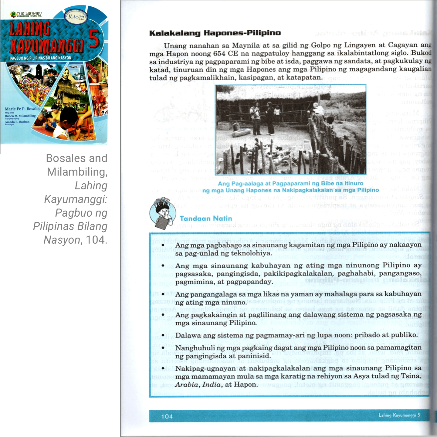 GRADE 5: Maire Fe P. Bosales and Amado E. Borbon, Lahing Kayumanggi: Pagbuo ng Pilipinas Bilang Nasyon (The Library Publishing House, Inc., 2017).